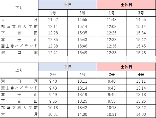 【富士山ビュー特急 時刻表】