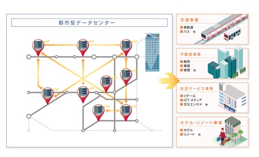 東急線沿線に既に敷設されている大容量光ファイバーネットワークを直接活用できるという利点を生かし、今後は、渋谷を含めた東急線沿線へのデータセンター設置も視野に入れ、東急線沿線でのデジタル都市基盤の構築を通じて沿線の魅力と付加価値を高め、人口誘致にも貢献します。また、今後も社会課題の解決を通じて、多様なステークホルダーに新たな価値を提供できるまちづくりを目指します。
