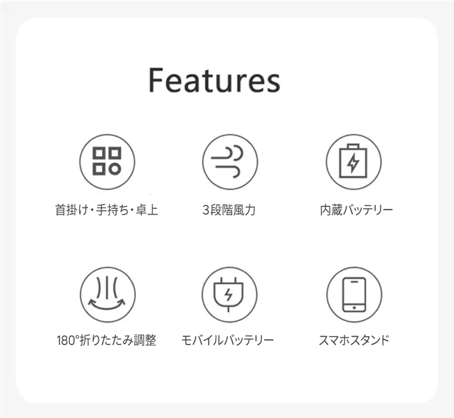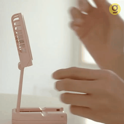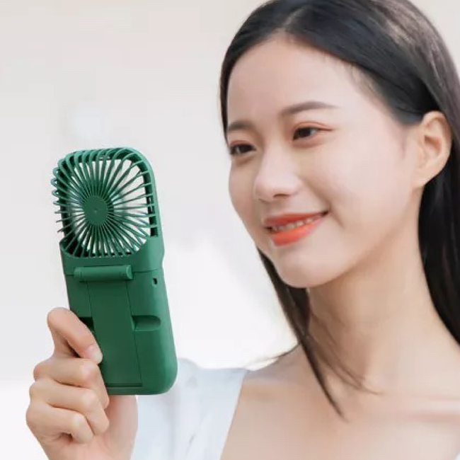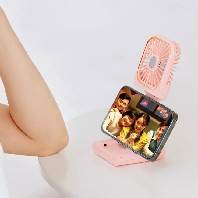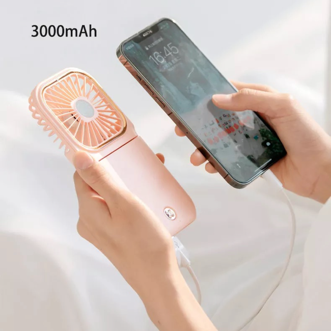持ち運びに便利なミニサイズ!多機能ハンディーファン【折りたたみ/首掛け/スマホスタンド/3段階の風力設定/充電式】