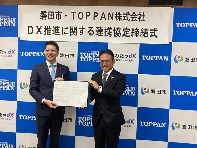 静岡県磐田市(市長:草地 博昭、以下 磐田市)とTOPPANホールディングスのグループ会社であるTOPPAN株式会社(本社:東京都文京区、代表取締役社長:齊藤 昌典、以下 TOPPAN)は、DX推進に関する包括連携協定(以下 本協定)を2023年11月21日(火)に締結しました。