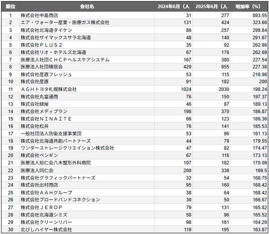 株式会社SalesNow(本社:東京都渋谷区、代表取締役:村岡功規、以下「当社」)は、国内540万社の企業情報を完全網羅した日本最大級のデータベース「SalesNow DB」より、人口の多い上位30都市を対象とした「従業員数増加率ランキング」を発表しました。本リリースでは、各都市別のデータをもとに、今回は「札幌市に本社を置く企業」を対象に、従業員数の増加傾向にフォーカスします。