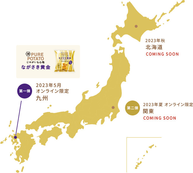 5年目を迎える今回の「ブランド芋くらべ」では、昨年同様に九州編「じゃがいも心地 ブランド芋くらべ ながさき黄金」から始まり、九州から北海道へと北上しながら、まるで桜前線のように美味しい旬を迎える“じゃがいも前線”に合わせて各地のブランド芋をお届けします。