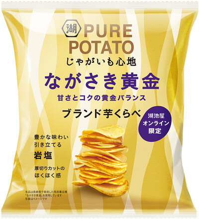 株式会社湖池屋(本社:板橋区/社長:佐藤章)は、2023年の「ブランド芋くらべ」第1弾として、昨年6月に発売しご好評をいただいた、長崎県のブランド芋“ながさき黄金”を贅沢な厚さにスライスした特別なポテトチップス「じゃがいも心地 ながさき黄金」を、2023年5月25日(木)より湖池屋オンラインショップ限定で発売します。