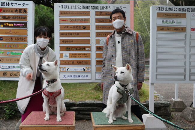 続いて和歌山城へ。場内にある観覧無料の動物園で、国の天然記念物に指定されている「紀州犬」と触れ合います。