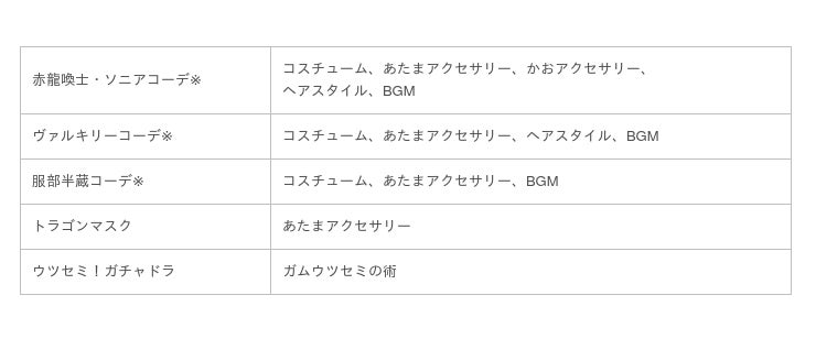 ※コーデに含まれるいずれかのアイテムを装備すると、同じコーデの他アイテムも自動的に装備される特別なアバターアイテムとなります。