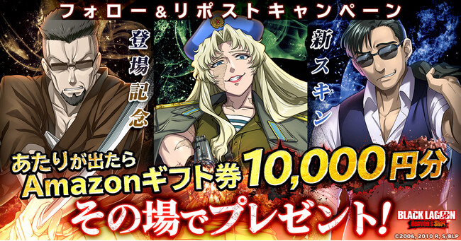 バラライカや張、松崎銀次のスキン登場を記念して、ゲーム公式X(旧Twitter)にてAmazonギフト券1万円分が抽選で当たるフォロー&リポストキャンペーンを1月20日(土)より開催します。