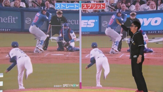 川崎さんは「山本投手は去年もスプリットを投げたかったと思うが、ボールの変化のせいなのか、なかなか落ちなかった。だからカーブを投げざるを得なかった」と前置きした上で、今季の山本投手のスプリットの軌道が狙い通り打者の近くで落ちていることを、試合映像を交えて説明。そして、スプリットとストレートの軌道が打者の手前まで全く同じだと紹介しました。