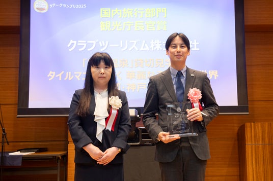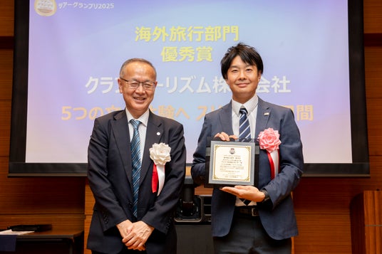 クラブツーリズム株式会社(本社:東京都江東区、代表取締役社長:酒井博、以下クラブツーリズム)は、一般社団法人 日本旅行業協会(本部:東京都千代田区、会長:高橋広行、以下JATA)が実施した「ツアーグランプリ2025」において、今年の応募総数147作品の中から「観光庁長官賞 国内旅行部門」「優秀賞 海外旅行部門」をダブル受賞し、2025年7月2日に行われた表彰式において表彰されました。