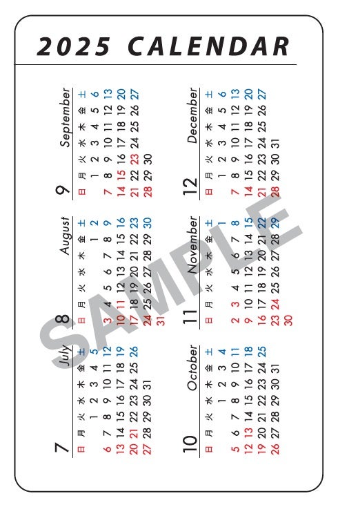 タワーレコードオリジナル特典2.:ジャケット絵柄カードサイズカレンダー