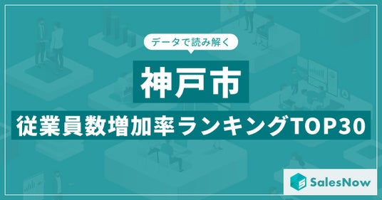 株式会社SalesNow(本社:東京都渋谷区、代表取締役:村岡功規、以下「当社」)は、国内540万社の企業情報を完全網羅した日本最大級のデータベース「SalesNow DB」より、人口の多い上位30都市を対象とした「従業員数増加率ランキング」を発表しました。本リリースでは、各都市別のデータをもとに、今回は「神戸市に本社を置く企業」を対象に、従業員数の増加傾向にフォーカスします。