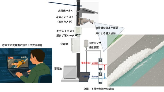 しかし、近年、気候の変動に伴なった短時間での記録的な降雪により、流雪溝への過度な投雪や、スコップなどの異物混入により内水氾濫が発生しており、更なるインフラ基盤の高度化が急務となっています。そのため、本協定を通じて、市とNTT東日本は、道路冠水や床下浸水などの二次被害の防止、安全性の向上と維持管理の効率化を目的とした協働体制を構築します。