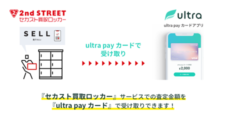 TISインテックグループの株式会社ULTRA(本社:東京都新宿区、代表取締役:竹谷 直彦、以下:ULTRA)は、2023年2月1日から、Visaプリペイド機能を搭載した「ultra pay カード」で、中古品買取と販売を行う総合リユースショップを展開する株式会社セカンドストリート(本社:愛知県名古屋市中区、代表取締役社長:今泉有道、以下:セカンドストリート社)がテスト導入するロッカー買取サービス『セカスト買取ロッカー』での査定金額をチャージできるようになることを発表します。