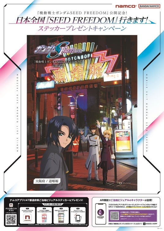 株式会社バンダイナムコアミューズメントは、大ヒット上映中の「機動戦士ガンダムSEED FREEDOM」とのコラボキャンペーン「『機動戦士ガンダムSEED FREEDOM』公開記念! 日本全国『SEED FREEDOM』行きます! ステッカープレゼントキャンペーン in ナムコ」を2024年2月9日(金)から、全国約200店舗の直営アミューズメント施設「ナムコ」で開催します。