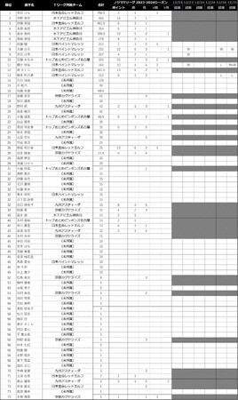 ※対象となる日程内にて消化試合数が異なる為、女子10試合、男子は14試合がポイント対象となります。