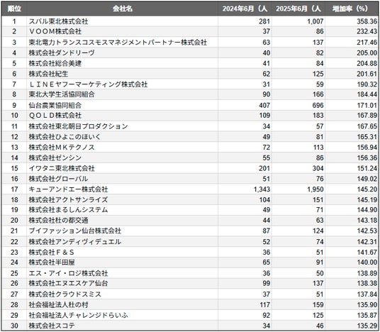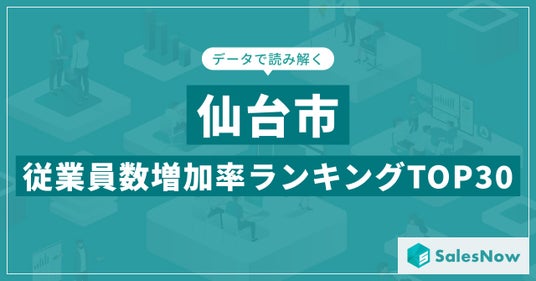株式会社SalesNow(本社:東京都渋谷区、代表取締役:村岡功規、以下「当社」)は、国内540万社の企業情報を完全網羅した日本最大級のデータベース「SalesNow DB」より、人口の多い上位30都市を対象とした「従業員数増加率ランキング」を発表しました。本リリースでは、各都市別のデータをもとに、今回は「仙台市に本社を置く企業」を対象に、従業員数の増加傾向にフォーカスします。