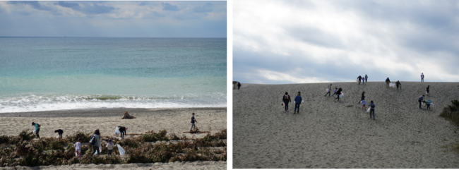 遠州灘を望む浜岡砂丘で3人1チームでごみ拾い