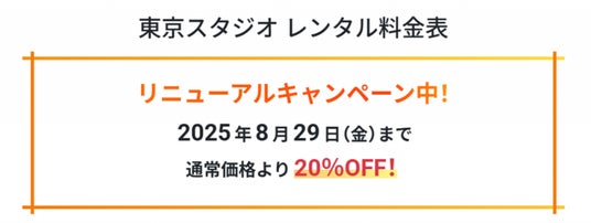 スタジオリニューアルキャンペーン(~2025年8月29日まで)