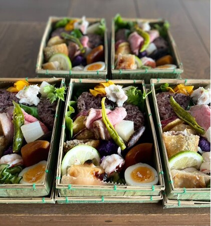 京都・神宮丸太町で、季節の素材の力を最大限に生かす料理と飲みものを提供するカリナリーハブ。看板メニューの小さな俵型の塩むすびに、季節の素材をシンプルで滋味深い味わいに仕立てた料理を合わせた秋のお弁当を今回のためだけに作りました。華麗な手さばきでおむすびを握る“おむすびすと”波平の見事な技もぜひ会場でご覧ください。