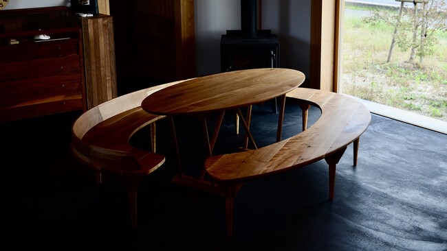 ヒノ氏が京都での修行を経て、故郷である出雲 楯縫(たてぬい)に立ちあげたベンチ(長椅子)専門アトリエ 『Bench Work Tatenui』では、座り集うことでそこに生まれる場や空間に焦点をあてたものづくりを活動の中心とし、心地良さを体感できる(舞台装置としての)木製家具の制作と開発、提案を行っています。