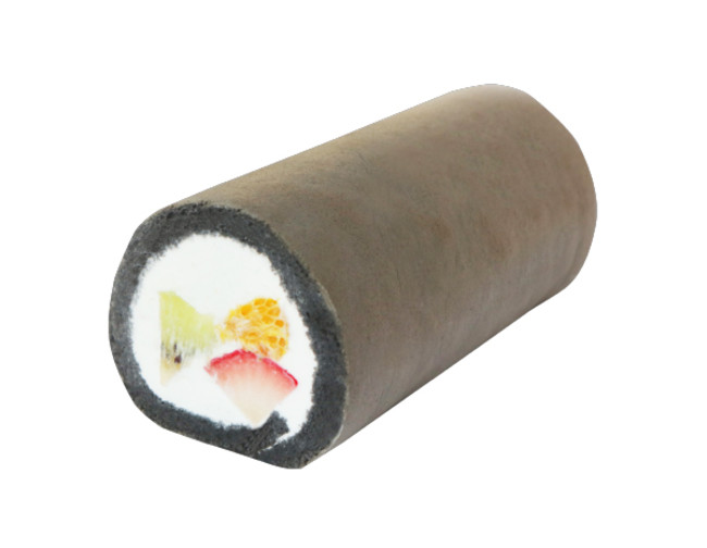 いちご、キウイ、オレンジを堂島クリームと竹炭パウダー入りの生地で巻きました!