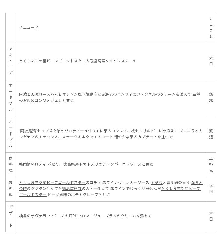 ※下線を引いた食材は徳島県産食材です
