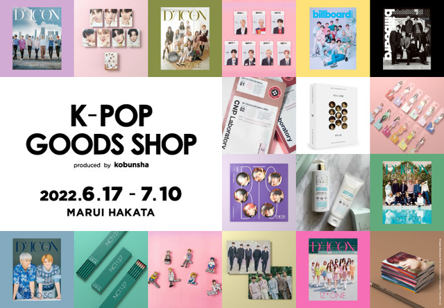 昨年日本初上陸した「BTS WORLD」の公式グッズ(光文社公式ECサイト・kokode.jpにて大好評販売中)や、大ヒットを記録しているSEVENTEEN神写真集「THE FACT SEVENTEEN PHOTOBOOK『YOU ARE IN US』」や「BTS goes on! JAPAN SPECIAL EDITION」、トレンドの韓国コスメなどを販売するイベント「K-POP GOODS SHOP」を博多マルイにて開催いたします。開催期間は2022年6月17日(金)~7月10日(日)の24日間で、グッズや写真集をご購入の方には会場限定特典を進呈する他、等身大のSEVENTEENメンバーと写真が撮れるフォトスポットもご用意するなど、K-POPファン必見のイベントとなっています。