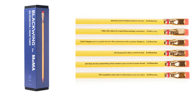 このペンシルセットで、文字やイラストを描きましょう。Ed Ruscha(エド・ルシェ)とBlackwing(ブラックウィング)のコラボレーションによるMoMA限定のライティングセットは、デスクの引き出しに加えたいアイテムです。オリジナルのBlackwing 602は、1934年に鉛筆メーカーのEberhard Faber(エバーハード・ファーバー)社によって、アーティスト、ライター、ミュージシャンの日常用に発売されました。ルシェもBlackwing愛用者であったことから、展覧会を記念して製作しました。鉛筆にはルシェの6つの言葉が記されています。※11月発売