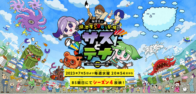 株式会社湖池屋(本社:板橋区/社長:佐藤章)は、SDGs推進活動の一環として、子どもから大人まで、みんなが楽しくSDGsについて学べるアニメーション 湖池屋SDGs劇場「サスとテナ」を2021年10月より放映開始し、現在WEBサイトやYouTubeにてシーズン1~3の全39話を公開しています。この度、アニメを通じたSDGs推進活動を継続し、さらなる啓発に繋げたいとの想いから、シーズン4の放映が決定しました。