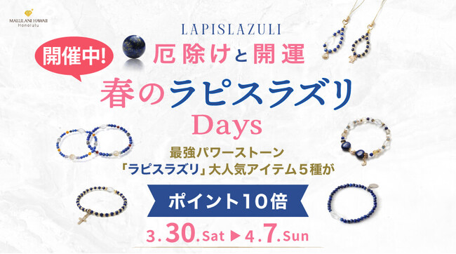 期間中、マルラニハワイ オンラインショップで対象のラピスラズリを使用した商品をお買い物いただくと対象商品がポイント10倍!