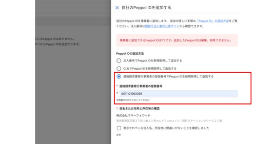 Peppol IDの追加方法についての詳細は、こちらをご確認ください。