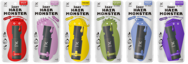 「リーゼ 1DAY HAIR MONSTER」は普段の髪色に部分的にカラーを加えて、気軽に1日だけ髪印象を変えられるポイントカラーリング剤(毛髪一時着色料)です。ヘアスタイリング後につけたい部分の毛束を細くとって、表面部分にローラータイプのチップをコロコロと転がすだけで、簡単に毛先までムラなく塗ることができます。 2020年の4月の発売以来、襟足や毛先、髪の内側などにワンポイントカラーを加えて、1日だけのおしゃれが楽しめると好評です。