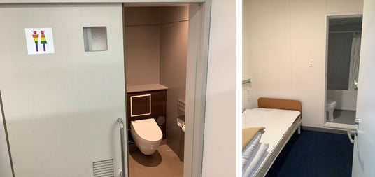 社員用施設における誰でもトイレ・ホテルタイプ休養室の整備例
