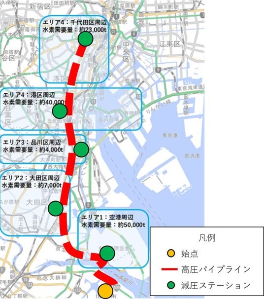 東京ガスは、空港臨海部全域(神奈川県川崎市~東京都千代田区)における最適な水素パイプライン構築に向けた検討を2026年度末まで実施します。。なお、都内への高圧水素パイプライン構築の具体的な検討は初めての取り組みです。