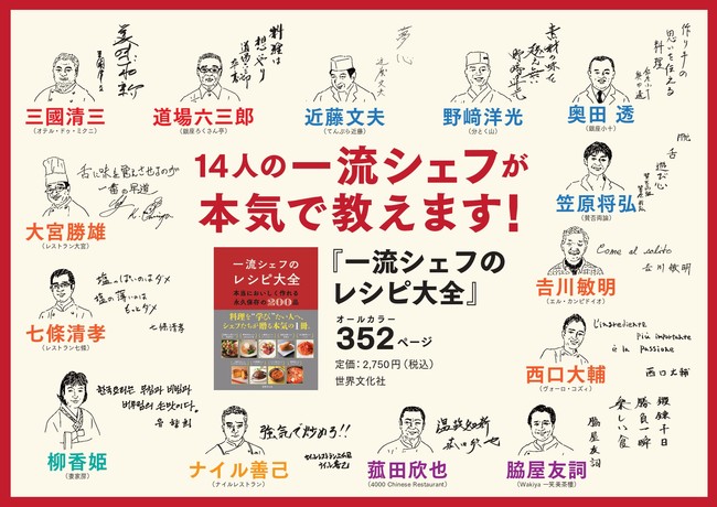 和食・天ぷら、フレンチ、イタリアン、洋食、チャイニーズ、韓国家庭料理、インド料理と、各料理ジャンルを代表するシェフ14人が、貴重なご自身のレシピはもちろん、調理のポイントを惜しみなく公開。“学びたい欲”を刺激する永久保存版の一冊です。