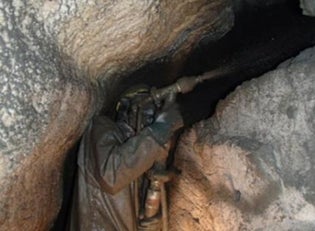 <鍾乳洞内での吹付け>