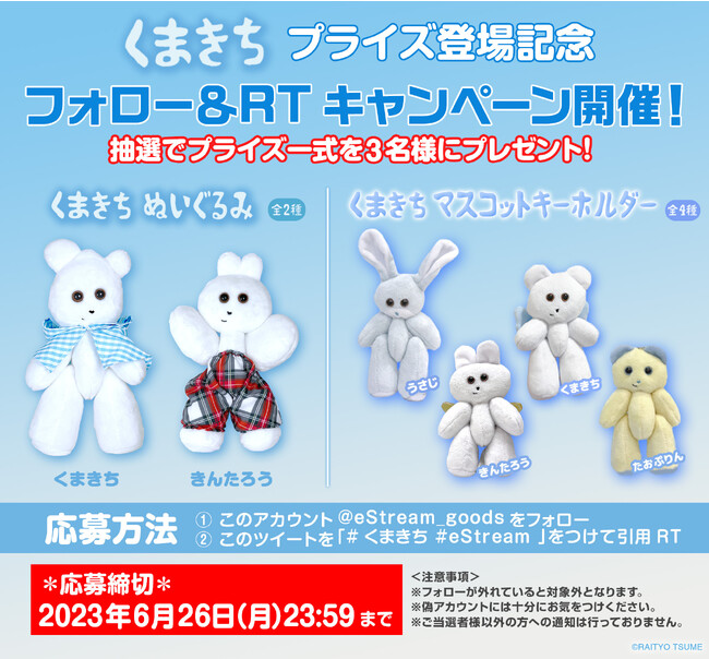 1.eStreamグッズ公式Twitter(@eStream_goods)と、くまきち公式Twitter(@kmakici)をフォロー