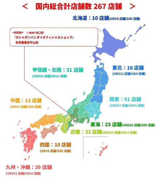 『ガシャポンバンダイオフィシャルショップ』未来屋書店守山店は、300面を一堂に展開するバンダイ公式の大型カプセルトイ専門店として、愛知県名古屋市に出店します。バンダイの新商品をすべて取りそろえ、ここでしか味わえない「ガシャポン体験」を提供することで、「ガシャポン」の新たな魅力を発信していきます。また書店ならではのガシャポン体験をお届けするべく、随時お客さまへキャンペーン情報の発信等を行ってまいります。