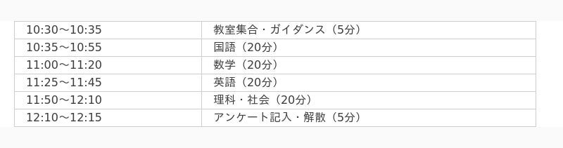 105分(国語・数学・英語各20分、理科・社会計20分、ガイダンス・休憩等25分)