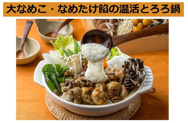 大なめことなめたけで餡を作り、和風だしのスープにトッピング。好きなタイミングでとろろをかけ、さらにとろみをプラス。キノコの旨味をたっぷり楽しみながら、身体をじんわり温める「温活」とろろ鍋。〆はご飯であんかけご飯に。