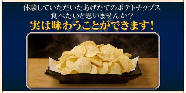 (完成したポテトチップスを食べることができるエリア 工場直送便など限定商品の販売も実施)