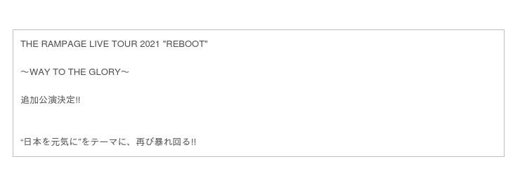THE RAMPAGE "REBOOT"ツアー追加公演を