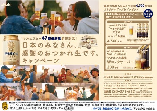 ■「マルエフカー全国走破記念!感謝の想いを込めて全国47万名様にアサヒ生ビールを贈ります!