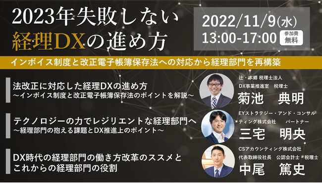 オンラインセミナー「2023年失敗しない経理DXの進め方 ~インボイス制度と改正電子帳簿保存法への対応から経理部門を再構築~」