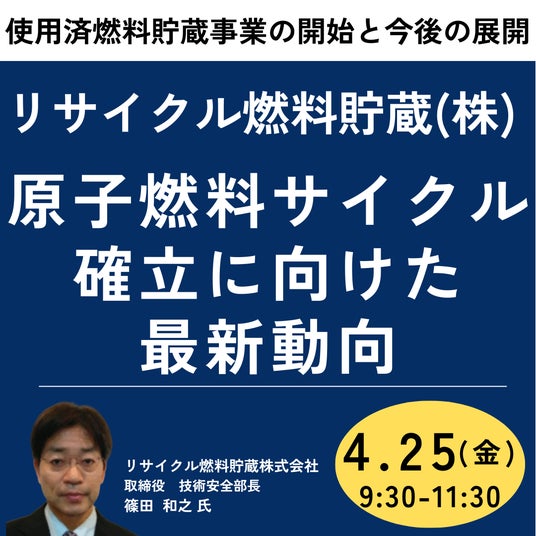 JPI(日本計画研究所)は、リサイクル燃料貯蔵株式会社 取締役 技術安全部長 篠田 和之 氏を招聘し、原子燃料サイクルの確立に向けた最新動向について詳説いただくセミナーを開催します。