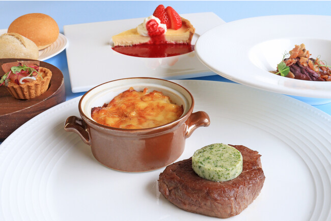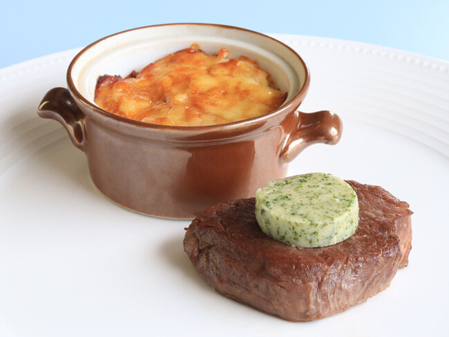 Plat ビーフステーキ じゃがいものグラタン メートルドテルバター