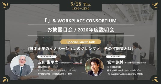 コクヨ株式会社(本社:大阪市/社長:黒田 英邦)は、東京・大阪の2拠点体制で、企業横断の共創とイノベーション創出を加速する異業種合同事業コンソーシアム『「 」 & WORKPLACE CONSORTIUM(アンドワークプレイスコンソーシアム)』を、4月下旬より開始しますので、お知らせします。また初回キックオフイベントを、4月24日(金)@東京、5月28日(木)@大阪にて開催します。