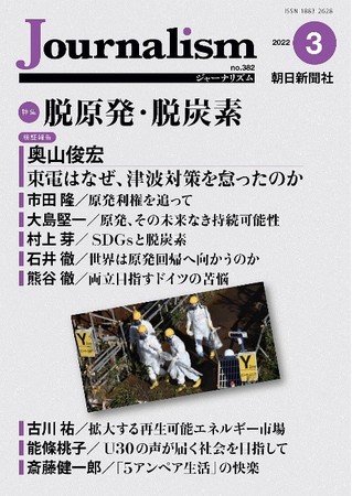 株式会社朝日新聞社(代表取締役社長:中村史郎)は3月10日(木)、「月刊Journalism」3月号を発行しました。特集は、「脱原発・脱炭素」です。