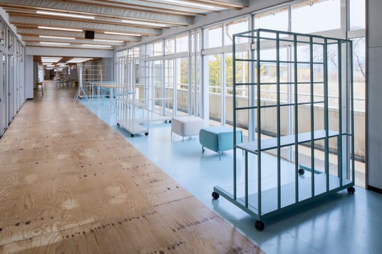 校舎のメイン動線である大廊下に、子どもたちが自ら空間を仕切ったり、探究学習の成果を展示したりできる可動式パーティション「Any Wall(エニーウォール)」を設置。展示のレイアウト変更や、そこから生まれる他学年との交流や対話にどう寄与するかを観察します。