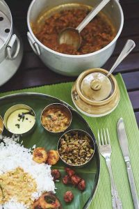 いくつかの料理を大皿にまとめて提供するいわばインドの「ターリー」。今回は、無印良品で販売しているカレーをアレンジ、香り高いインド版カレー定食をお届けします。