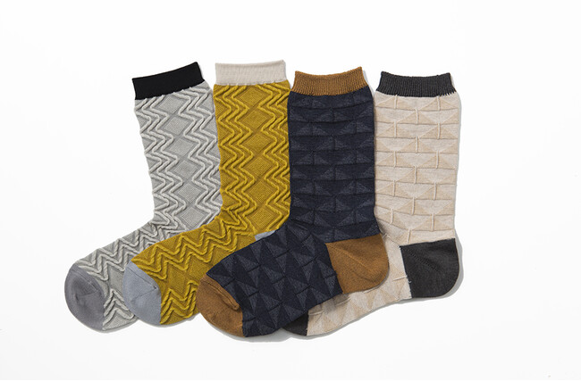 日本の靴下産地、奈良県磯城郡。明治時代に農業の副業として靴下を編み始めたのが始まり。当時はかかとに合わせて90度だった靴下のかかとは、量産化とともに120度へ変化。靴下誕生の原点から履き心地を見直し、直角に編み立てた「直角靴下」をお届けします。